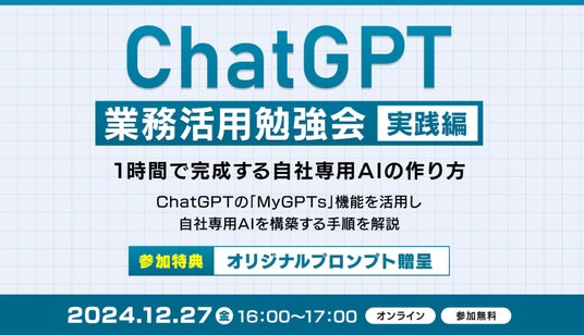 そこで、今回のChatGPTビジネス活用勉強会では、一切エンタメ要素や個人利用のテーマを排除し、全編ビジネスユースでの話を展開します。さらに、ChatGPTの「MyGPTs」という機能を使って、勉強会中に、ロープレAIや社長クローンを構築する手順も解説します。