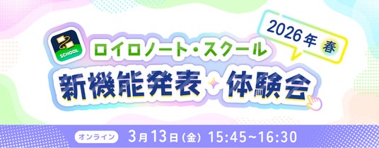 株式会社LoiLoは、3月13日(金)「新機能発表・体験会 2026年 春」をオンライン開催します。相互参照や見取りに便利な「生徒別共有ノート」や、自動採点・集計ができる「テストカード」の便利な新機能をご紹介します。さらに、近日中にリリース予定の新機能もいち早くご紹介!