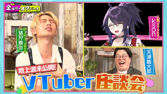 今回の座談会では、YouTubeチャンネル登録者数127万人を誇る大人気VTuber ksonがテレビ初出演。雑談配信・ゲーム実況・ライブまでこなすマルチプレーヤーで、アメリカ・アトランタ出身で英語もペラペラのため、英語圏のファンも多数。まさに日本を代表する世界的なVTuberです。