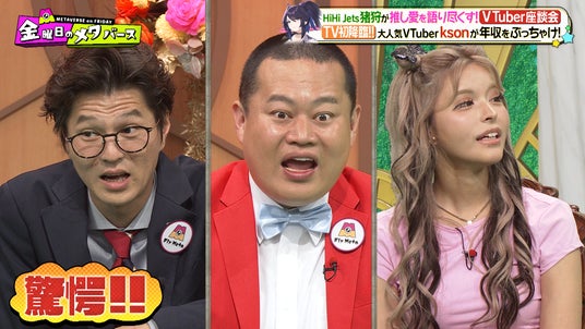 テレビ朝日が毎週金曜日深夜0時45分から放送する「金曜日のメタバース」は、MCのモグライダー・ハシヤスメ・アツコ、国内最大級のVTuber事務所「にじさんじ」に所属し登録者40万人超えのVTuberレオス・ヴィンセントと、毎回避けては通れないバーチャルな話題や最新トレンドなどをVTuber・メタバース民・ヒトが集うカオスなスタジオからお届けしています。