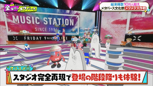 今回は、テレビ朝日で開催中の「メタメタ大作戦」の「ミュージックステーション」のブースをスタジオメンバーで体験しました。番組名物の「階段」など、完全にスタジオを再現していて、Mステに出演した気分が味わえます。番組に出演した超豪華アーティストの直筆サイン色紙もあり、ハシヤスメ・アツコが最後に出演した際のBiSHのサインも掲載されています。