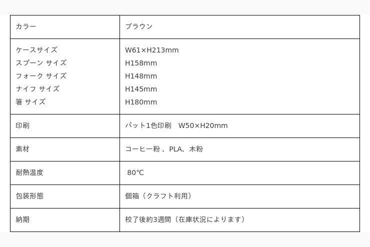 PLA cutlery set:https://sus.i-goods.co.jp/item/oem/coffee-grounds-pla-cutlery-set