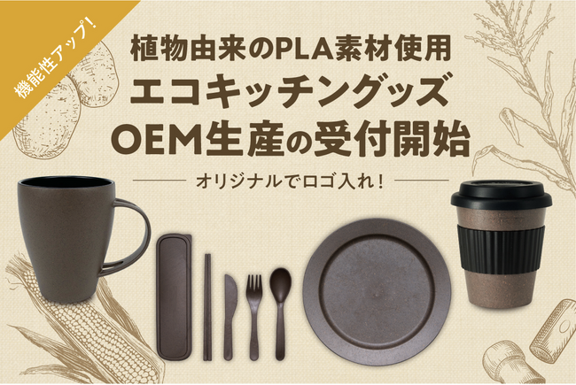 オリジナルグッズを企画製作するアイグッズ株式会社(本社:東京都渋谷区)は、2023年8月末に植物由来のPLA素材を使用したエコなキッチングッズ『PLA mug(植物由来PLAマグ)』、『PLA tumbler(植物由来PLAタンブラー)』、『PLA plate(植物由来 PLAプレート)』、『PLA cutlery set(植物由来 PLAカトラリーセット)』の全4種をOEMにて生産受付を開始しました。2022年4月に応募購入サービスMakuake(マクアケ)で期間限定販売していた人気シリーズが、機能性をプラスした上で、オリジナルロゴでの製造を可能にしました。