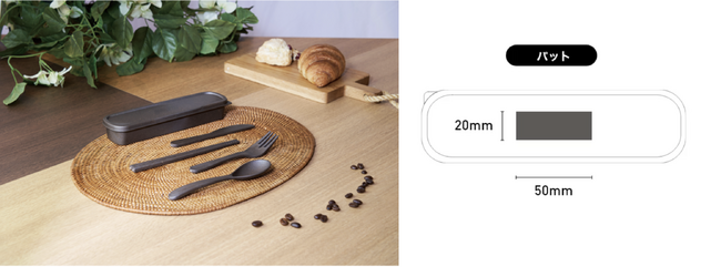 スプーン・フォーク・ナイフ・箸の4点が揃ったセットで、多様な食事スタイルに対応します。丸みを帯びたデザインが個性的で、男女年齢問わず使いやすい製品です。また、ケースまで丸ごと洗えるため衛生的に使用できます。ケース部分にはオリジナルのロゴを施すことが可能です。
