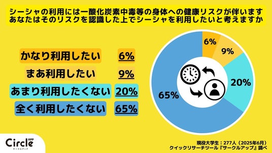 学生たちにシーシャを吸うことによる一酸化炭素中毒等の健康被害のリスクを提示したうえで「それでもシーシャを利用したいか」という質問を投げかけたところ、85%もの若者が「利用したくない」という回答をしました。