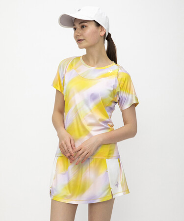 1番の特徴は、”翼”をイメージした上向きの袖。サーブ時に腕を上にあげた際、生地のツッパリを軽減します。他にも、ダブルダーツや背面1枚構造を特徴としており、テニスの基本動作を当社のアパレル研究開発拠点「DISC OSAKA(ディスク オオサカ)」にて検証し開発した独自パターンです。(特許出願中)