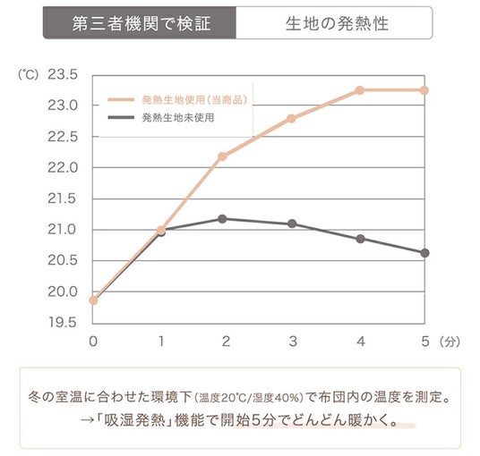 本製品は“とろりん生地”の滑らかな肌触りだけでなく、機能的で暖かい点も特徴の1つです。