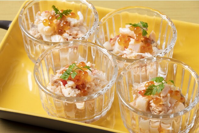 また、シェフからの贈り物として、お一人一皿ずつ「網走・マリン北海道さんと北見食品工業さんから仕入れたシーフードのマリネ」をご提供させていただきます。