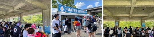 来場者の水分補給をサポートし、熱中症予防やプラごみ削減に貢献できるウォーターステーションをご用意し、フェス運営に協力いたしました。2日間で合計9万人の方にご来場いただいた本フェスですが、猛暑の中での開催もあり、当日は多くの方がペットボトルやマイボトルを持参してウォーターステーションにお越しいただき、2日間のフェスで約17,400本分のペットボトル(500ml換算)を削減することができました。