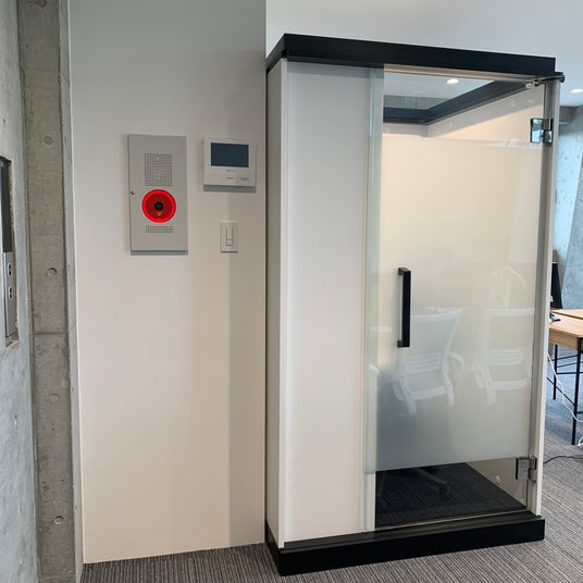 複数名のオフラインディスカッションやブレインストーミングに利用できるミーティングブース。モニター完備で、ディスカッションしやすい環境を整えています。