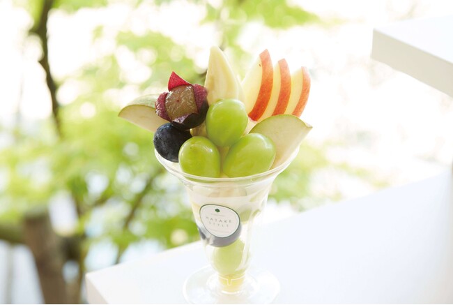 果樹園で採れたばかりの今が旬のフルーツ4種をたっぷりのせたパフェ