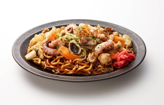 6種の魚介を贅沢に使用した津軽みそ香る海鮮焼きそば