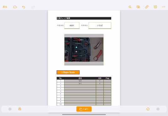 スキャン結果は、i-Reporterの帳票にそのまま出力されるため、工具チェックの記録がデジタルデータとして自動的に蓄積されます。いつ、誰が、どの工具を確認したかというエビデンスが残り、安全管理の証跡としても活用できます。