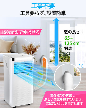 · 【工事いらずで設置簡単】移動式エアコンとして、室外機を取り付ける必要がないので壁の穴あけ工事も必要ありません。賃貸住宅や狭い書斎などエアコンを取り付けられないところに住んでも、この一台で厳しい暑さを乗り切れていただけます。送風が強くて、建設現場のような室外など広くて冷房が効かない場所での使用にも便利です。
