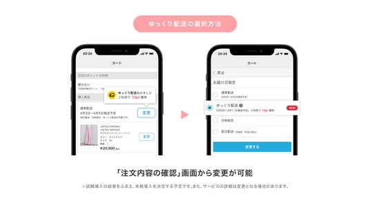 ファッションEC「ZOZOTOWN」は、お客様が通常配送(※1)よりも余裕のあるお届け時期を選択した場合に、お買い物に使用できるZOZOポイントを受け取れる「ゆっくり配送」を、4月2日(火)から試験導入します。