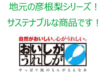 彦根梨は、平和堂の地元滋賀県彦根市の曽根沼干拓地で栽培されている特産品です。彦根梨は樹上で完熟させてから収穫するため、糖度が高くみずみずしいのが特徴。自然の恵みをたっぷり詰め込んだ、甘くて美味しい滋賀県産の梨を使用したE-WA!のこだわり商品をこの機会にぜひお試しください。