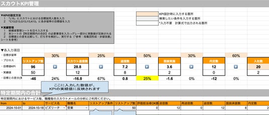 本シートは、候補者のリストアップから選考、効果測定、さらには「入社後の活躍」までを一気通貫で管理できるExcel/スプレッドシート形式のテンプレートです。