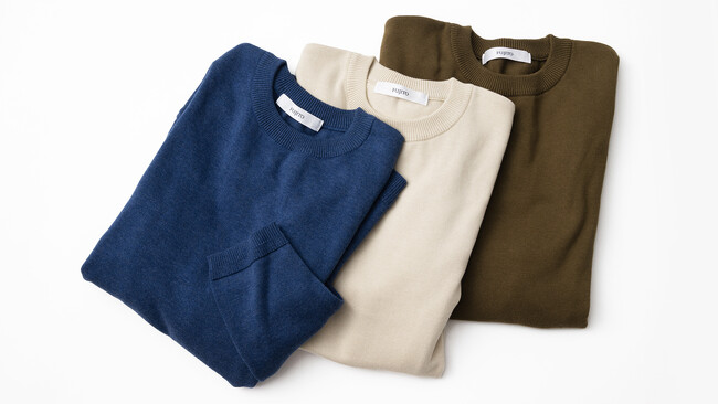 上品な印象とサラリと着れる素材感。カットソーのように着れる、コットンニット