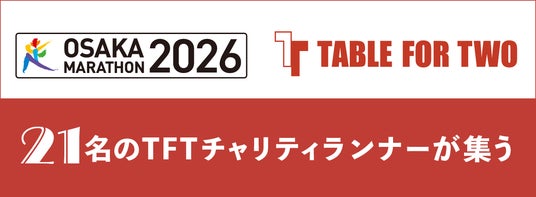 日本発、世界の食料問題の解決に取り組む特定非営利活動法人TABLE FOR TWO International(以下、TFT)は、2026年2月22日(日)に開催される「大阪マラソン2026」において、初めてチャリティパートナー(寄付先団体)に選出されました。これに伴い、TFTのミッションに共感し、21名のチャリティランナーがTFTの想いを載せて走ります。また、「社員(または会員)が走り、ファンドレイジング費用は会社・団体が支援する」という形で社員の挑戦を後押しくださる企業・団体の協力により、チャリティランナーの活動がさらに力強いものとなっています。