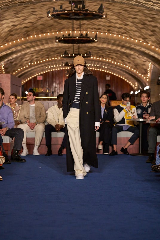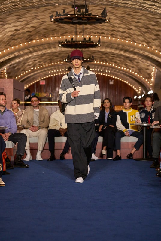 グランド・セントラル・オイスター・バーの息をのむようなアーチ型のタイル天井の下で、ファッション界をリードするクリエーターたちがショーをキュレーションしました。ミシェル・リーがキャスティングしたトミー・ガールとトミー・ボーイたちは、自信に満ち、控えめでクールに成長した生粋のニューヨーカーで、街と自分たちのスタイルにすぐに馴染みました。