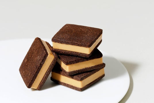キャラメルのような香ばしく甘い味わいのブロンドチョコレートに対し、クッキーにはカカオ濃度80%のビターな高カカオチョコレートを用いてコントラストを出すことで、味わいに奥行きをもたせています。