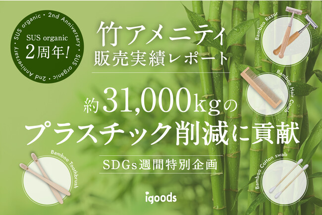 オリジナルグッズを企画製造するアイグッズ株式会社(本社:東京都渋谷区)は、2023年9月をもって、ホテル旅館向けの当社オリジナルエコアメニティブランド「SUS amenity(サスアメニティ)」のリリース2周年を迎えました。それを記念し、今回は竹を使ったエコアメニティ「SUS organic(サスオーガニック)」シリーズの制作・販売実績をまとめました。今注目されている竹素材アメニティの実態をご紹介します。