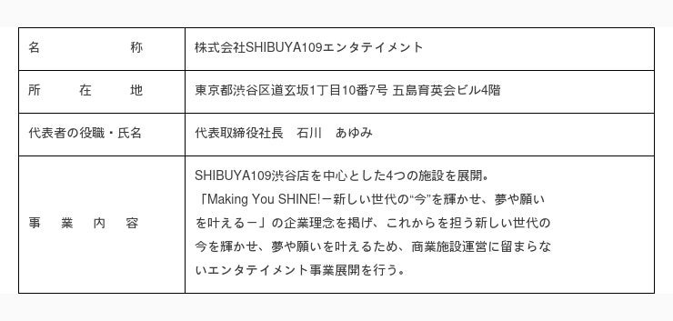 (3) 株式会社SHIBUYA109エンタテイメントの概要