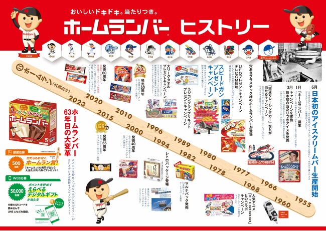 また、発売当時から愛されてきた「当たり棒」は「ホームラン賞」にて引き続き採用。ホームランバーを食べた後にスティックに「ホームラン」の焼印が現れたお客様に、オリジナルグッズをプレゼントいたします。