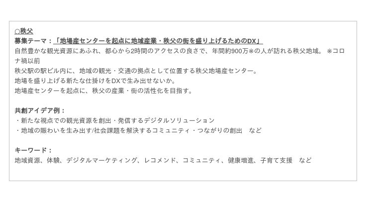 ■『LOCAL DIGITAL INNOVATION PROJECT』各地域の募集テーマ