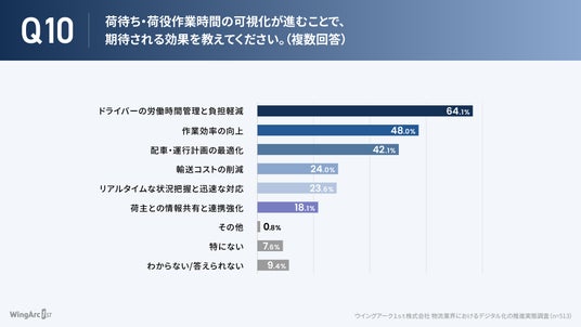 10.64.1%が、荷待ち・荷役作業時間の可視化により、「ドライバーの労働時間管理と負担軽減」に期待