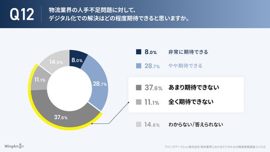 12.半数が、デジタル化による物流業界の人手不足問題の解決に期待できず