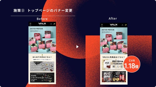 そのCVRが低いページに対して、鉄板施策と呼ばれるものとVALXに特化した施策を実装していきました。