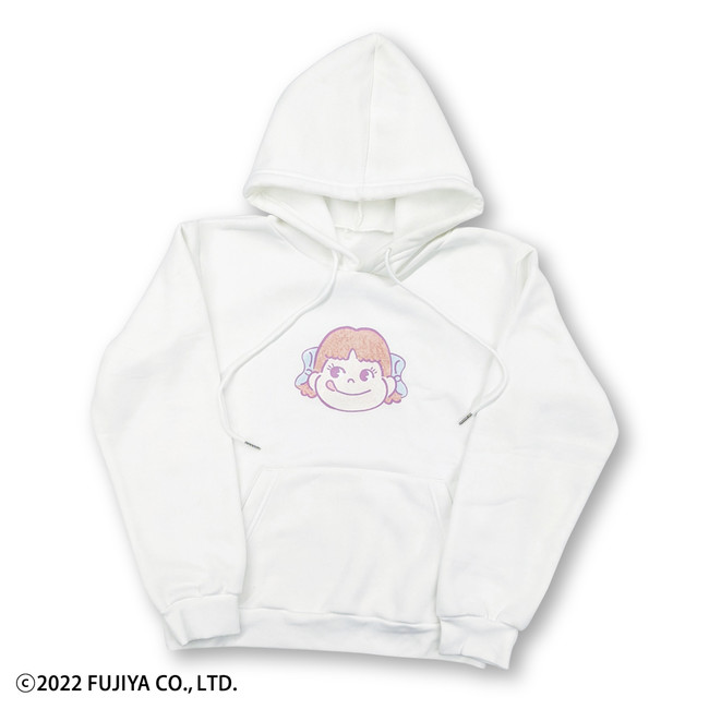 ペコちゃんがプリントされたフード付きスウェットパーカー