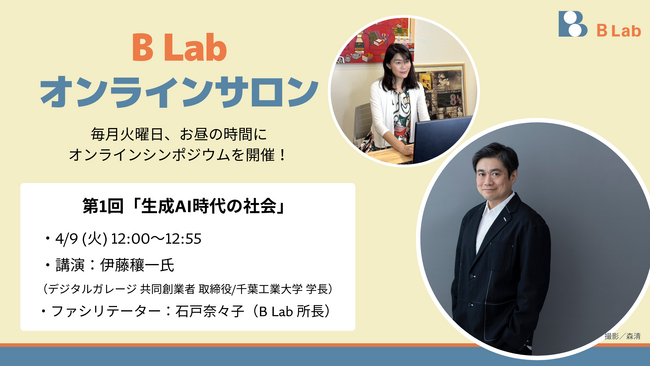 B Lab(iUの研究所、所長:石戸奈々子)は、ランチタイムに開催するオンラインシンポジウム「B Lab オンラインサロン」を開始します。様々な業界・分野で活躍している方々をゲストとしてお迎えし、おもしろい未来をみんなでつくるヒントや視座を提供することを目的とします。