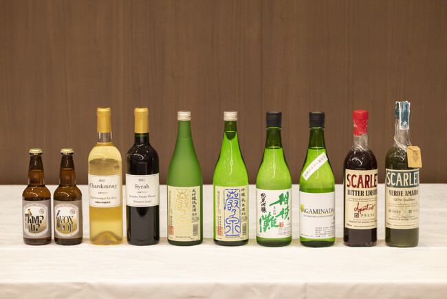 会場には県内最古の歴史を誇る老舗で、津久井の良質な水で酒造りを行う「清水酒造」。丹沢山系の湧水を用いて、米の旨味を生かしたバランスの良い食中酒を目指す「久保田酒造」。国の特区制度を活用し相模原産ワインの生産をスタートした「Kentoku Winery」。ベンチャービジネスとしてイタリア発祥のリキュール「アマーロ」を日本で醸造する「伊勢屋酒造」。地元産の素材を使い自然豊かな場所で無ろ過・無清澄のクラフトビールをつくる「Jazz Brewing Fujino」といった、酒造としてのバックボーンやヒストリーが全く異なる5社がそれぞれ試飲コーナーを構え、ゲストのメディア関係者の皆さまにサーブしました。