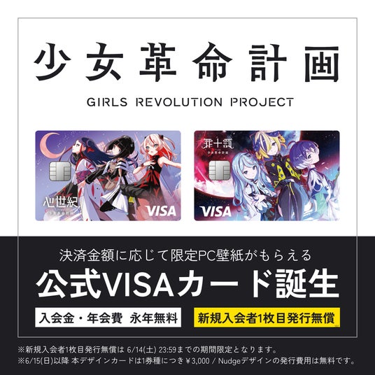 ナッジ株式会社(本社:東京都千代田区、代表取締役:沖田 貴史)は、バーチャルアーティストプロジェクト「少女革命計画」が所属するKAMITSUBAKI STUDIOと提携し、次世代クレジットカード「Nudge(ナッジ、以下「ナッジカード」)」にて、「少女革命計画 CARD」の提供を2025年5月7日 (水) より開始しました。