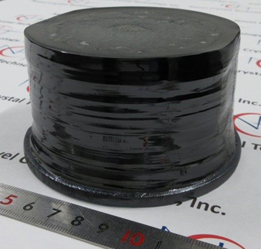 図3にDG法で育成した95mm径のβ-Ga2O3結晶を示します。A部分が種結晶であり、その上のB部分が育成した結晶になります。結晶は円柱形状であり、結晶育成長は50mmです。n型結晶になるように不純物を添加しています。β- Ga2O3結晶はn型不純物のみを添加した場合、青色の結晶になります。育成した部分は濃い青色となっており、n型結晶であることが分かります。