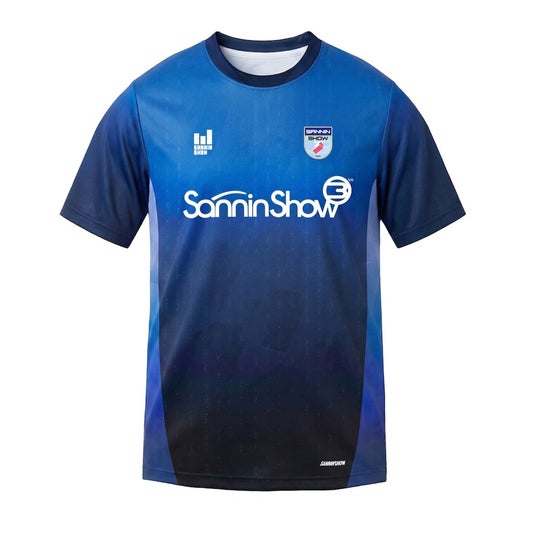 青から黒へと移ろうグラデーションをベースに、ファンの声援をイメージしたサウンドウェーブと、「3」ロゴをモチーフにした総柄デザインを組み合わせ、記念モデルにふさわしい存在感のある一着に仕上げました。