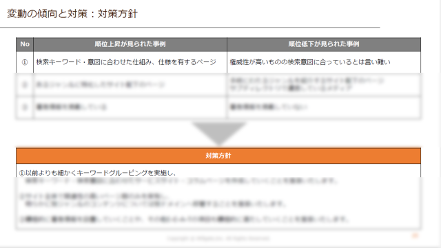 SEOは検索エンジンの動向により常に変化するため、Googleの最新アップデート情報は重要です。このレポートでは、最新のSEOへの理解を深め、検索エンジン環境に適応した対応を行うための資料となっています。また、アップデートによる順位変動の状況や、検索順位の上位表示を回復・維持するための対策方針も掲載しています。