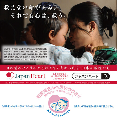 国際医療NGOである特定非営利活動法人ジャパンハート(東京都台東区 理事長:吉岡春菜)は、このたび都営地下鉄三田線内でマタニティマークとのタイアップ広告展開を開始しました。