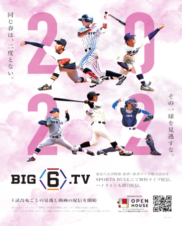 東京六大学野球春季リーグ戦全試合の無料ネットライブ配信サービス「BIG6.TV」(ビッグシックスティービー URL:https://sportsbull.jp/category/big6tv/ )をインターネットスポーツメディア「SPORTS BULL(スポーツブル)」にて2022年シーズンも配信。