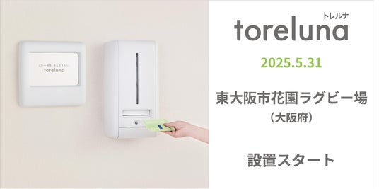 内容:東大阪市花園ラグビー場の女性用個室トイレに、トイレの個室で生理用ナプキンを常備し無料で提供するサービス「トレルナ」を設置し、利用者が安心して施設を利用できる環境を提供します。