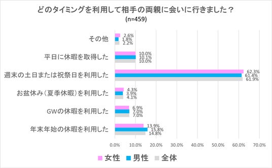 (2)両親への挨拶のタイミングは「週末または祝祭日を利用」が全体で61.9%!