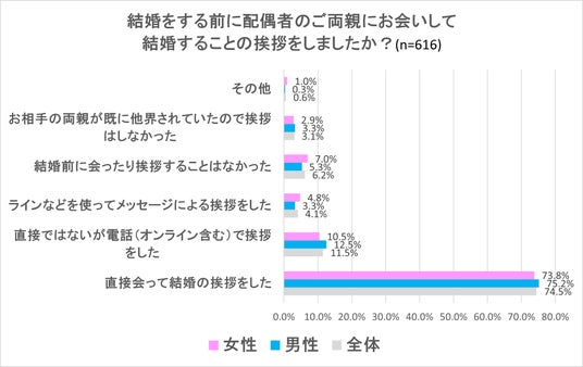 (1)既婚男女74.5%は結婚前に相手の両親に「直接会って結婚の挨拶」をしている!