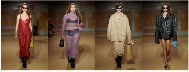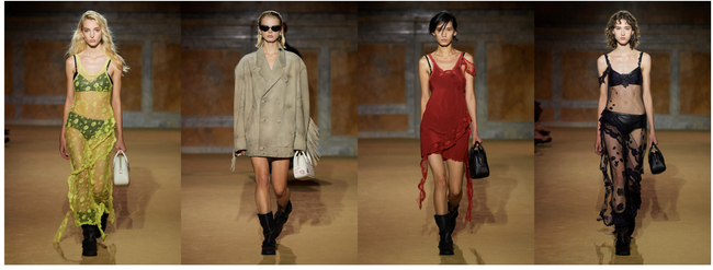Spring 2024では、クリエイティブなプロセスにおける廃棄物の削減に重点を置きながら、探求し、デザインし、学ぶことで、サーキュラー クラフトを探るプログラムである "COACH (Re)Loved (コーチ リラブド) " のデザインコンセプトを導入し、進化させています。コレクションでは、コーチのデザインチームによって調達されたデッドストックやプリラブドピースを再利用したレザーウェアやデニム、これまでのコーチの製造工程で余ったレースやファブリックで仕立てたスリップドレスなども発表されました。今回もまた、再生素材やリサイクル素材を活用するだけでなく、マリーゴールド、ブラックウォルナット、ログウッド、インディゴなどから抽出した植物染料をスリップドレスに使用しています。
