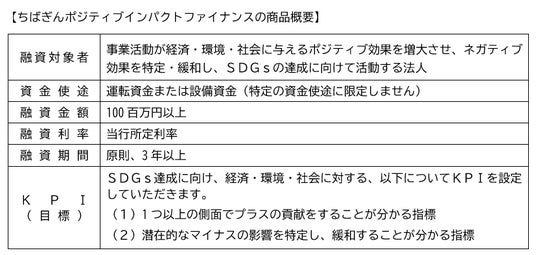 【ロードスターキャピタル株式会社向け「ちばぎんポジティブインパクトファイナンス」の概要】