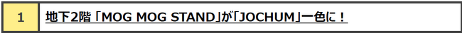 SNSでシェアしたくなるような「 JOCHUM 」一色のフォトジェニックな空間を、ぜひお楽しみください。