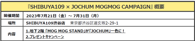 『SHIBUYA109× JOCHUM MOGMOG CAMPAIGN』を開催いたします。