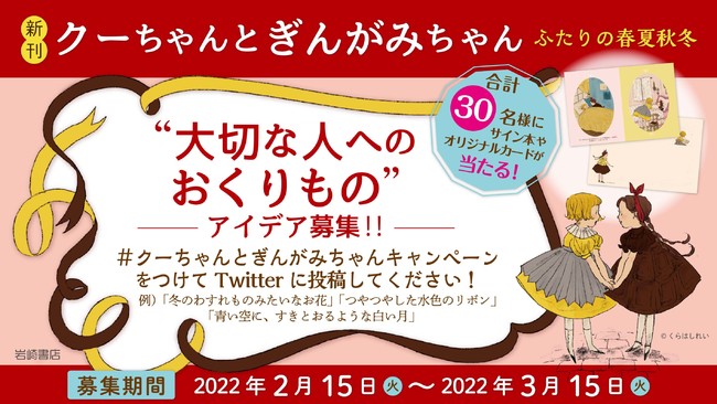 株式会社岩崎書店(代表取締役:小松崎敬子、本社:東京都文京区)は、新刊『クーちゃんとぎんがみちゃん ふたりの春夏秋冬』(作・北川佳奈/絵・くらはしれい)のTwitterキャンペーンを開催いたします。