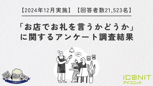 株式会社メディアシークが提供する累計3,600万DL超スマートフォンアプリ「QR/バーコードリーダー・アイコニット」内で、アプリユーザーを対象に毎日実施しているアンケート「アイコニット・リサーチ」において、「お店でお礼を言うかどうか」に関するアンケートを21,523名に対して2024年12月24日に実施いたしました。